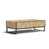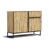 Le séjour Brick associe des façades en chêne massif à nœuds à une structure métal, avec la possibilité d’un éclairage LED en option. Il offre un large choix de teintes de bois, de nombreux meubles de complément et est fabriqué en Europe.
