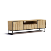 | technical_description | Parties apparentes en chêne massif à nœuds & métal laqué vernis polyuréthane Étagères, dos & séparations en panneaux de particules placage chêne Portes à charnières invisibles & amortisseurs Option led éclairage chaud Pieds métal |