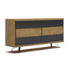 La collection Sygma présente un alliage de bois massif et de métal indus. Disponible en plusieurs teintes de bois, ses meubles proposent des portes coulissantes pour offrir un gain de place conséquent. Les façades de cette collection fabriquée en Europe offrent un jeu de relief travaillé. La table se distingue par son design industriel. Elle se décline elle aussi en plusieurs teintes de bois.
